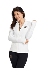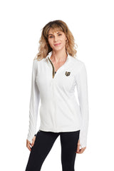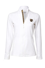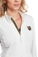 Women's premium quality full zip Vegas Knights Jacket. This jacket is 88% polyester with 12% spandex, combining for a warm, wonderful, fit. Anti-static, moisture wicking technology, with inner arm ventilation. This Alyssa jacket will become one of your favorites at the arena or around town.
