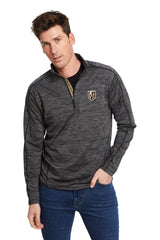 The ARMOUR jacket is 91% polyester and 9% spandex combining for a wonderful and luxurious feel with plenty of comfort. This is an officially licensed Vegas Knights quarter (1/4) zip jacket, lightweight, versatile, and sharp. the Vegas Knights wordmark is sewn into the inside pocket for a truly standout look.