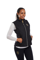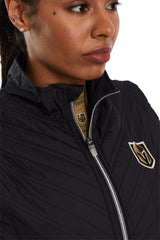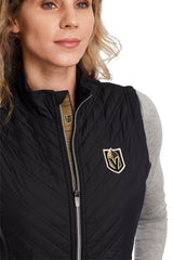Women's Vegas Knights vest in black made from 100% nylon. This premium quality Vegas Knights vest offers 94% polyester contrast with 6% spandex. Quilted with polyfill and stretch knit interlock fabric - this is the most luxurious Vegas Knights vest you can find anywhere.